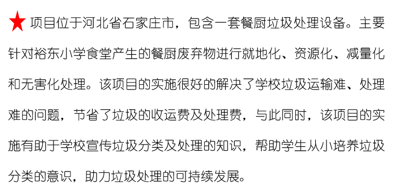 石家莊市裕東小學食堂餐廚垃圾處理項目